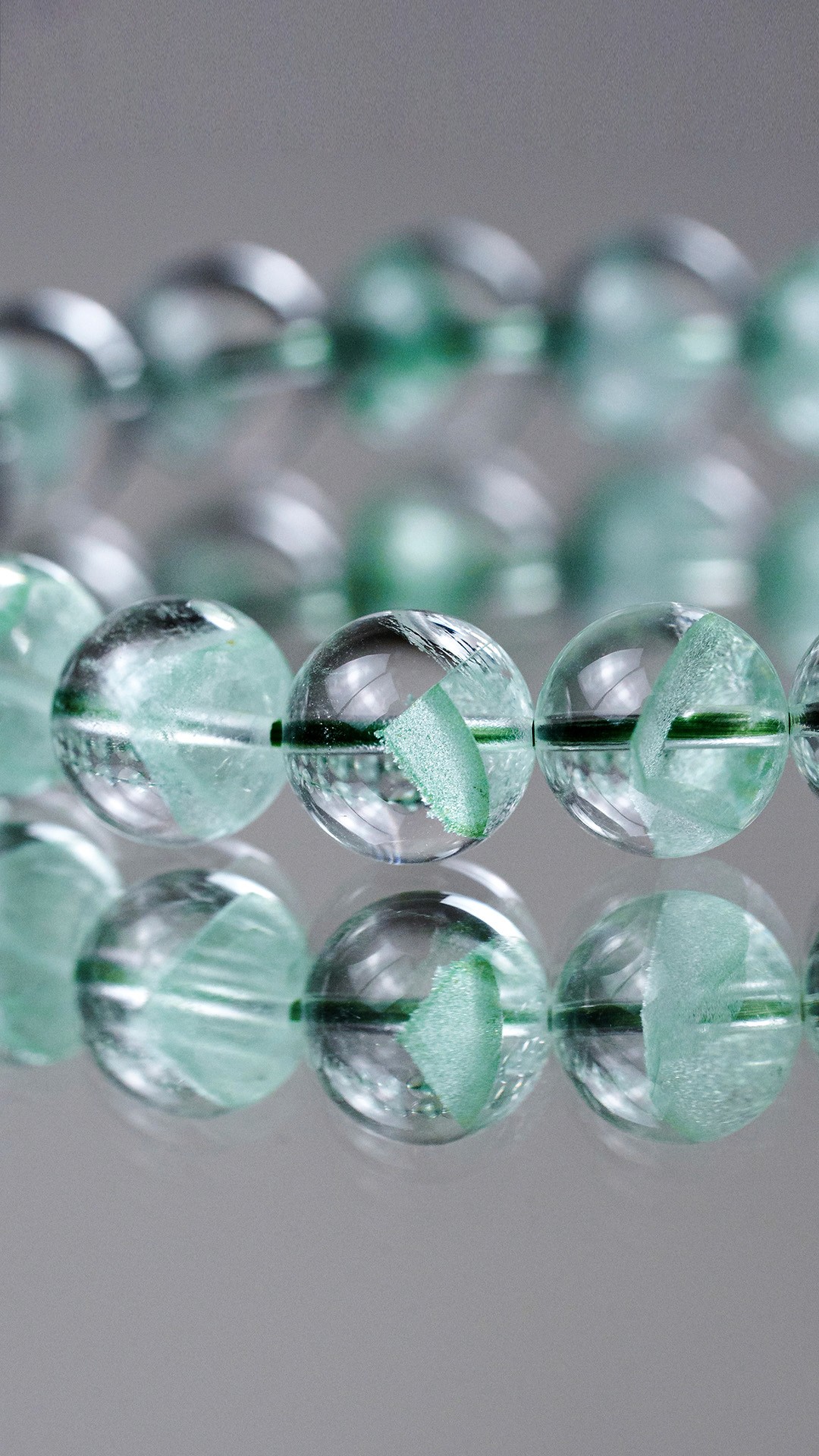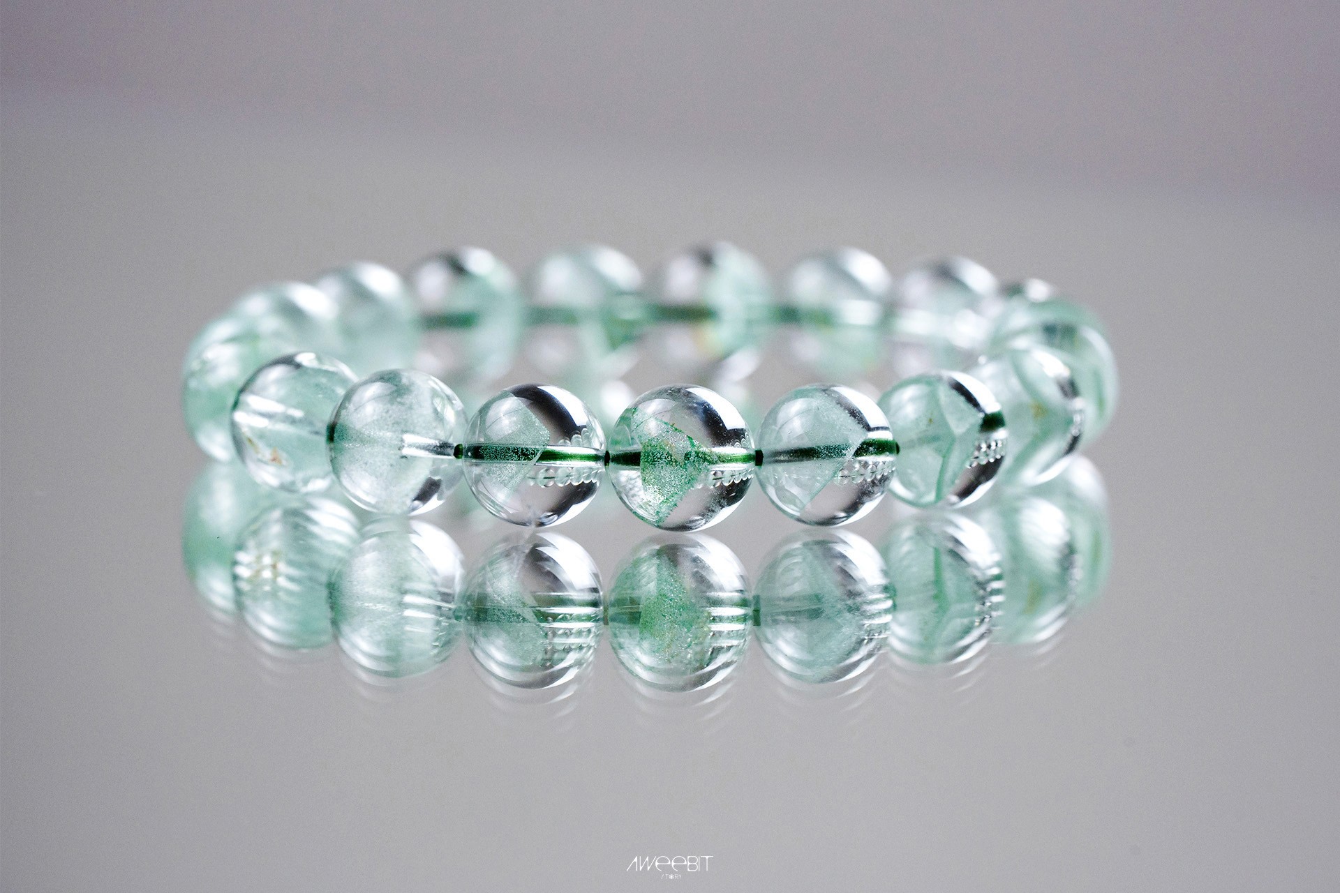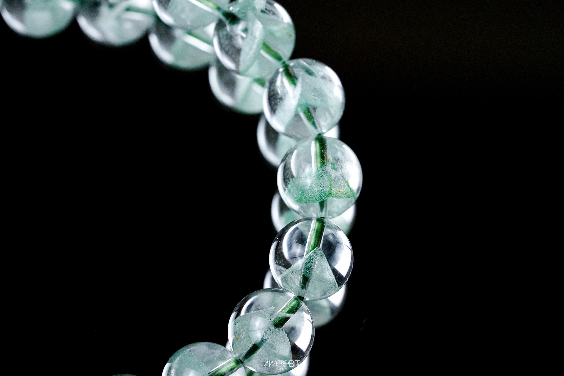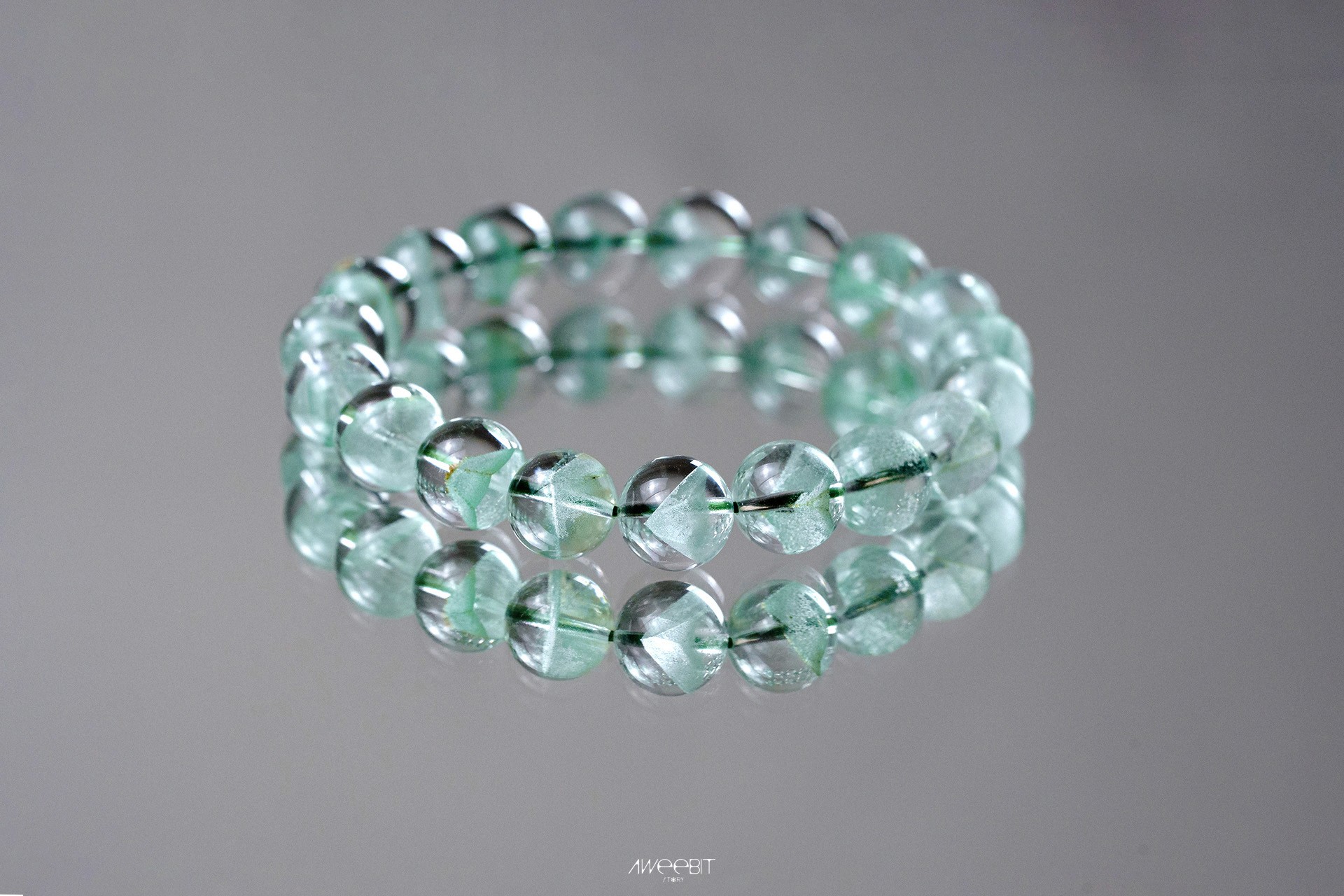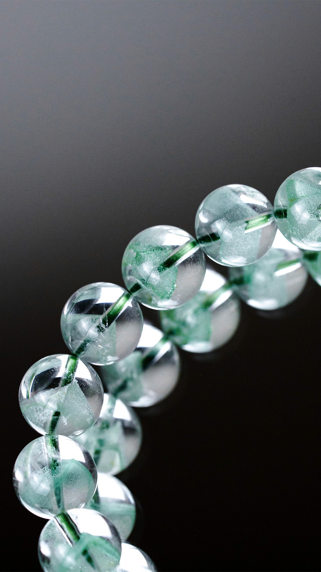 每一顆翠幽靈水晶珠都蘊藏著大自然最柔美的綠意,清澈晶透與礦物包裹的層次交織成腕上獨特的風景。純粹色澤下,每個角度都展現出不同光影與細緻結構——佩戴的不只是手鍊,更是一份來自土地、獨一無二的天然藝術。