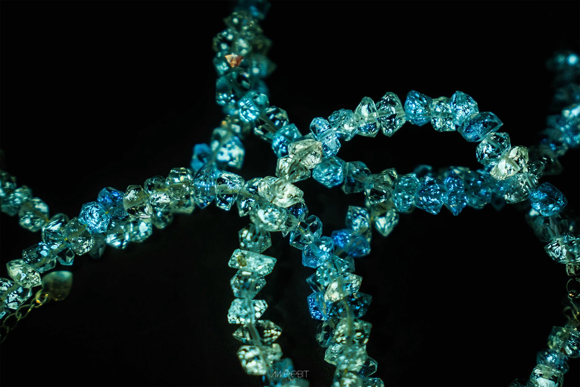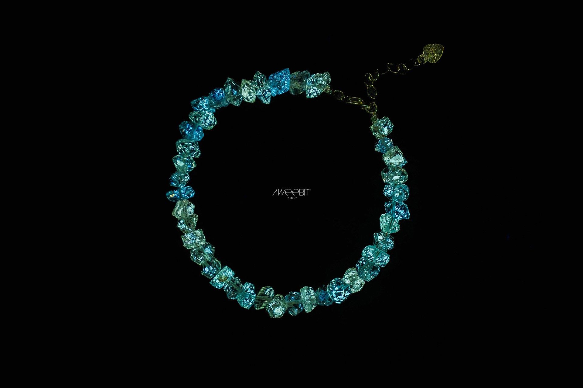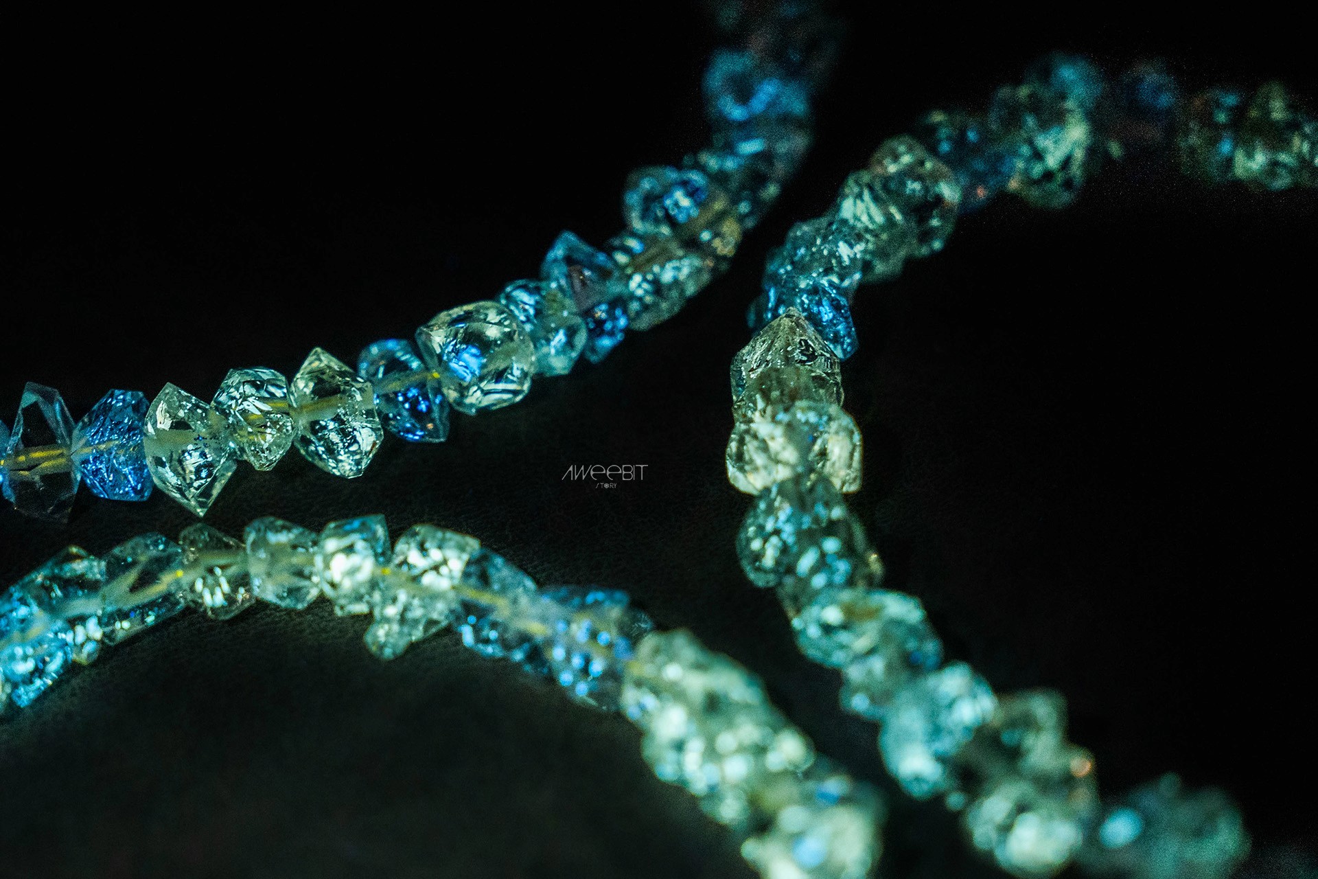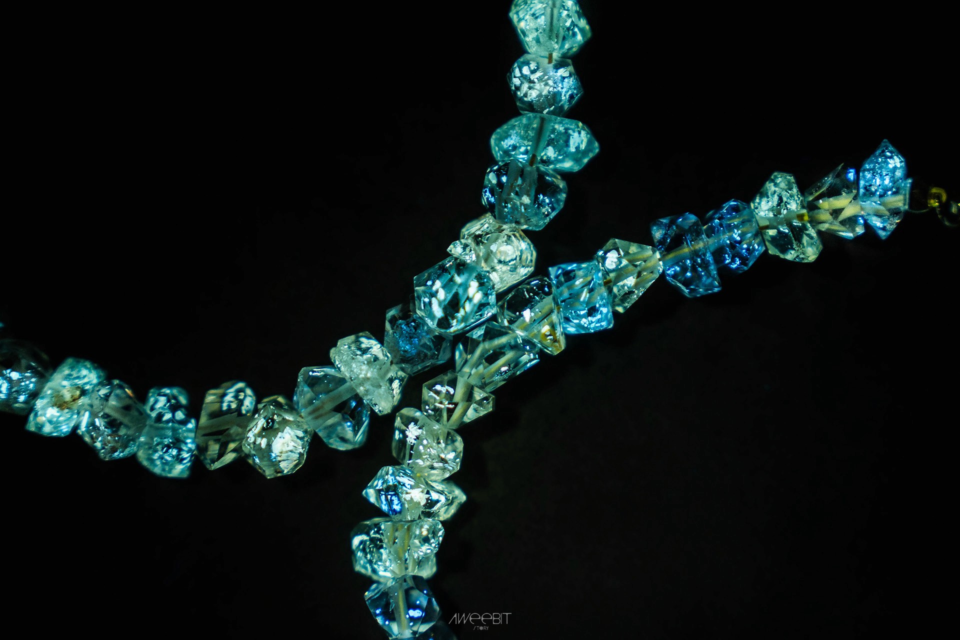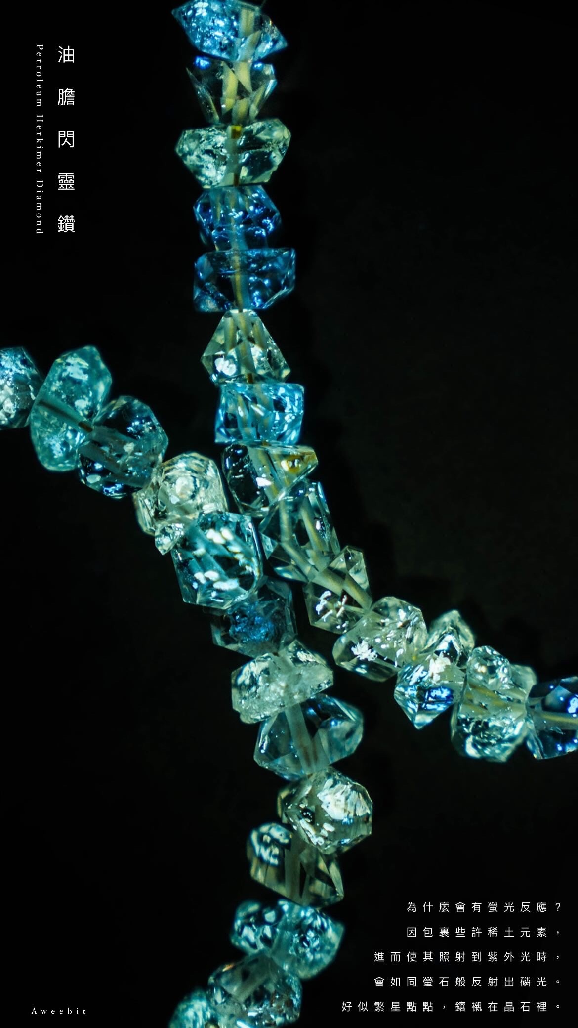 別於以往體透雙尖的閃靈鑽,而是因包裹礦物油,所以晶體會呈現些許黃色內含物的閃靈鑽!因包裹些許稀土元素,進而使其照射到紫外光時,會如同螢石般反射出磷光。好似繁星點點,鑲襯在晶石裡面