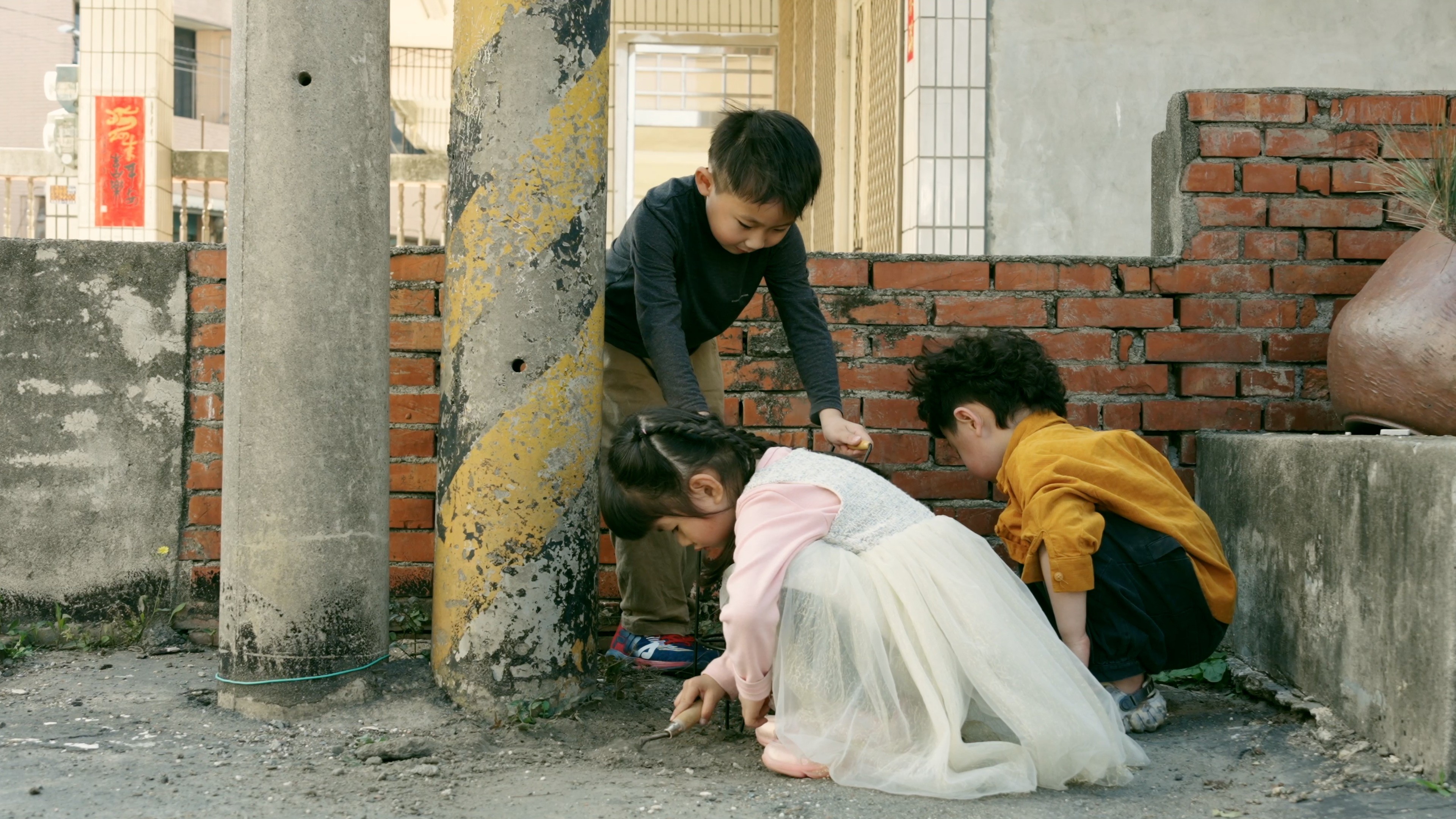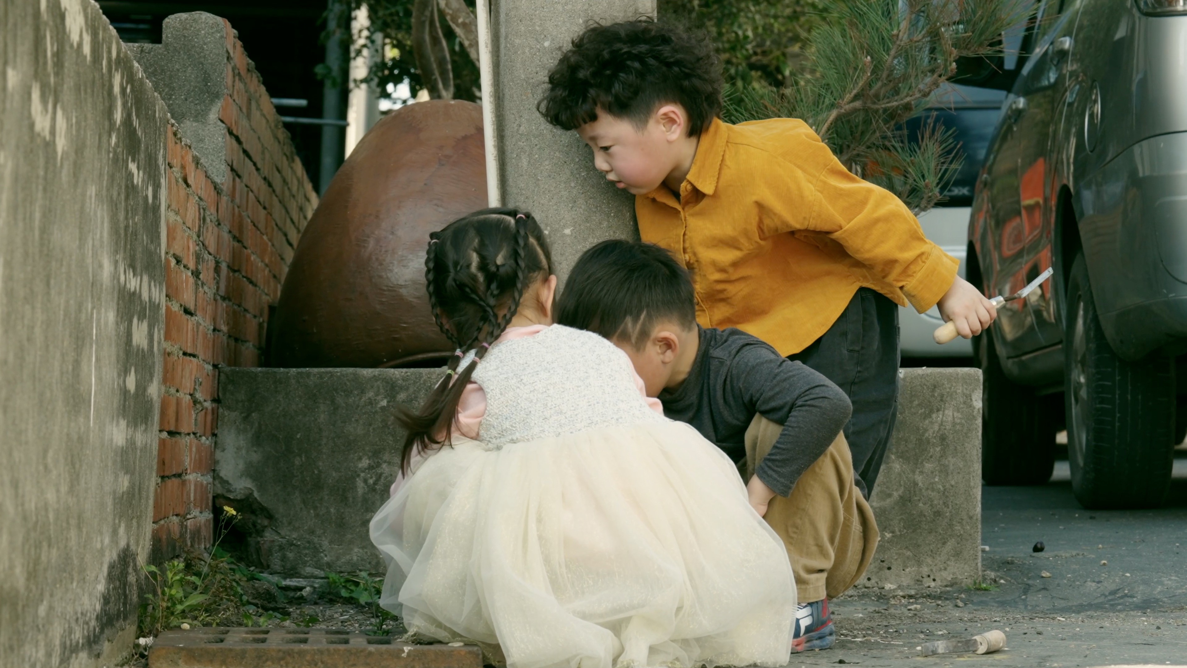 不需要太多物質,簡單的小角落、一把工具和滿滿的童心,就能打造最快樂的世界。孩子用想像力開疆闢土,把地上的泥沙變成黃金樂園,也把巷弄小徑畫成探險地圖。片中捕捉的是他們自在奔跑、無憂無慮的每一天——願我們都能保有這樣赤子之心,讓生活永遠純粹且容易知足。
