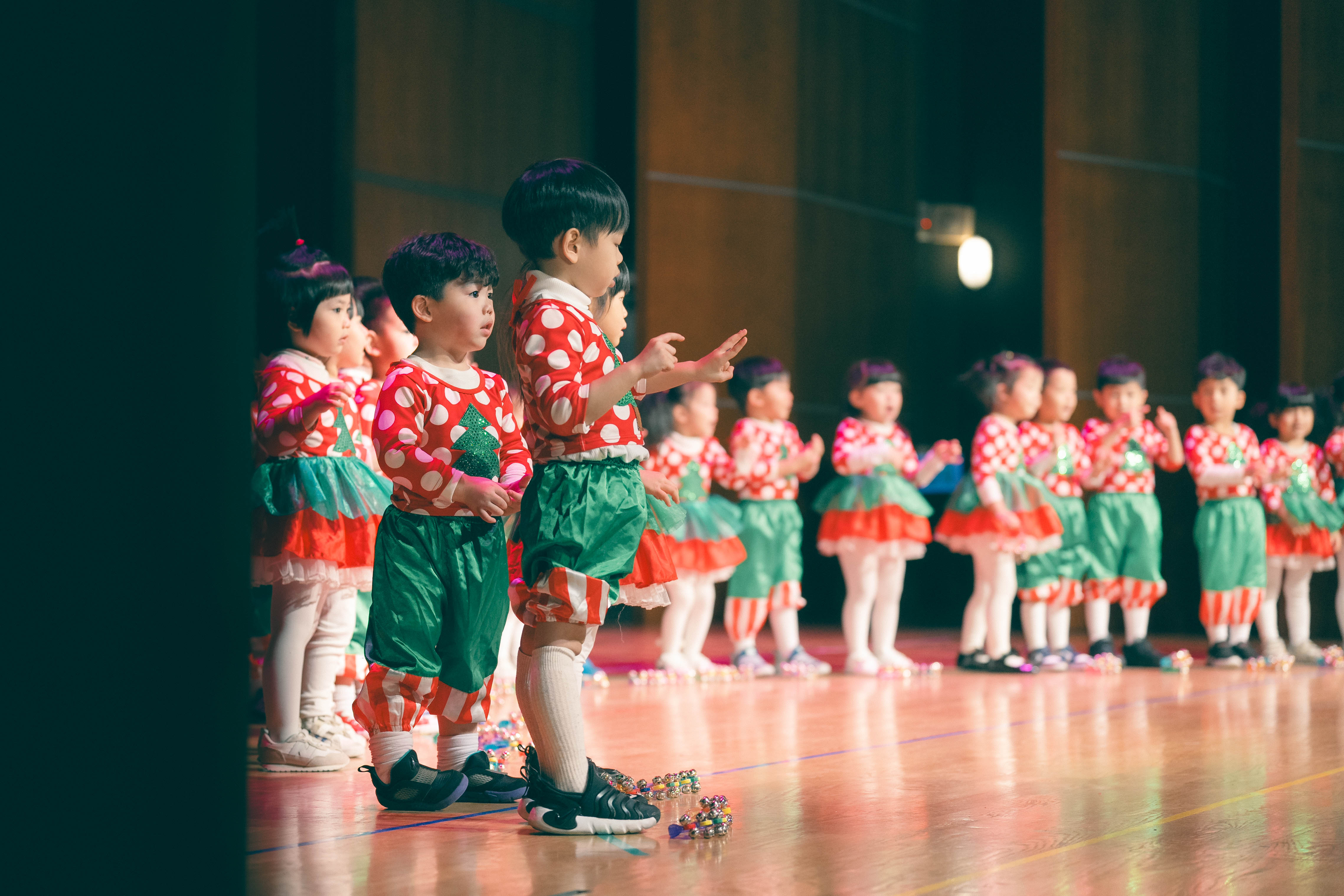 在聖誕的歡樂季節裡,幼稚園的小朋友用歌聲與舞步綻放純真的笑容。每一個準備和舞台上的時刻,都是孩子們用心成長的足跡,也凝聚了家長與老師滿滿的祝福。攝影記錄了歡笑、努力與聖誕溫暖的每一幕,留住孩子們最美好的童年回憶。