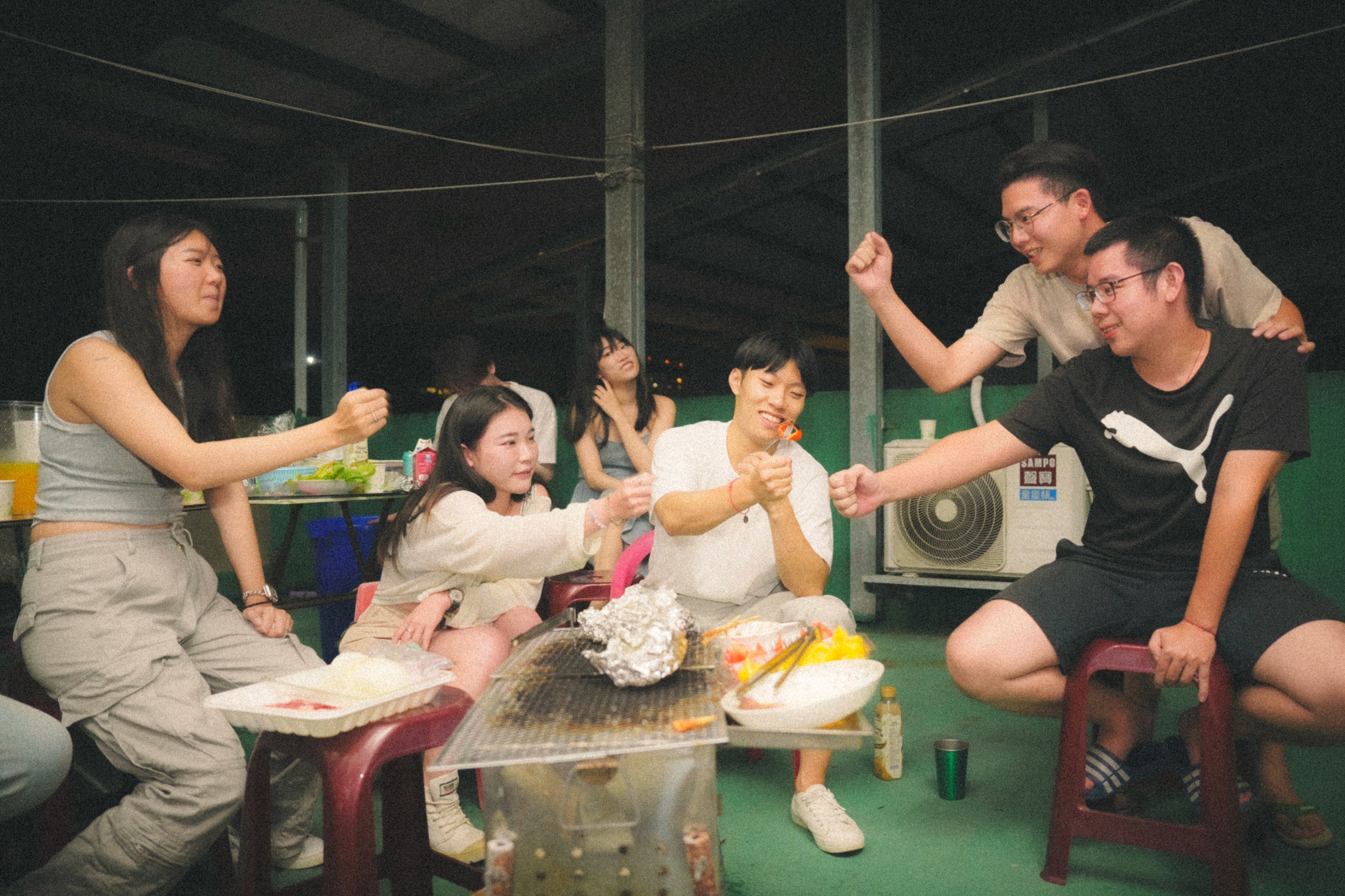 在中秋的夜晚,皎潔月光下炭火升騰,大家齊聚烤肉,嘗美味、話家常。影像捕捉炭火與笑聲交織的時刻,濃濃人情味與團圓感溫暖流動。這就是專屬於中秋烤肉的節慶記憶,細膩展現平凡生活中的幸福光景。